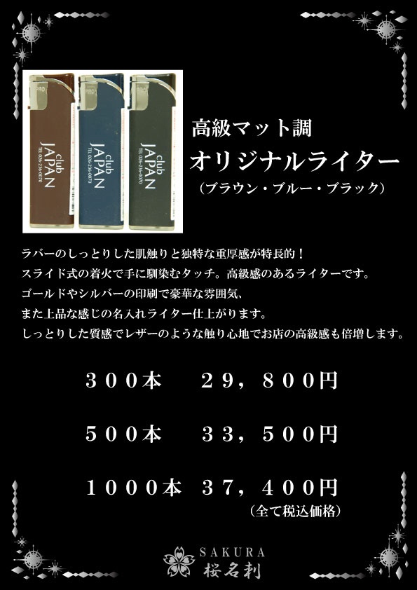 ラバーのしっとりした肌触りと独特な重圧感が特徴的のライター!しっとりした質感でレザーのような触り心地でお店の高級感も倍増します。