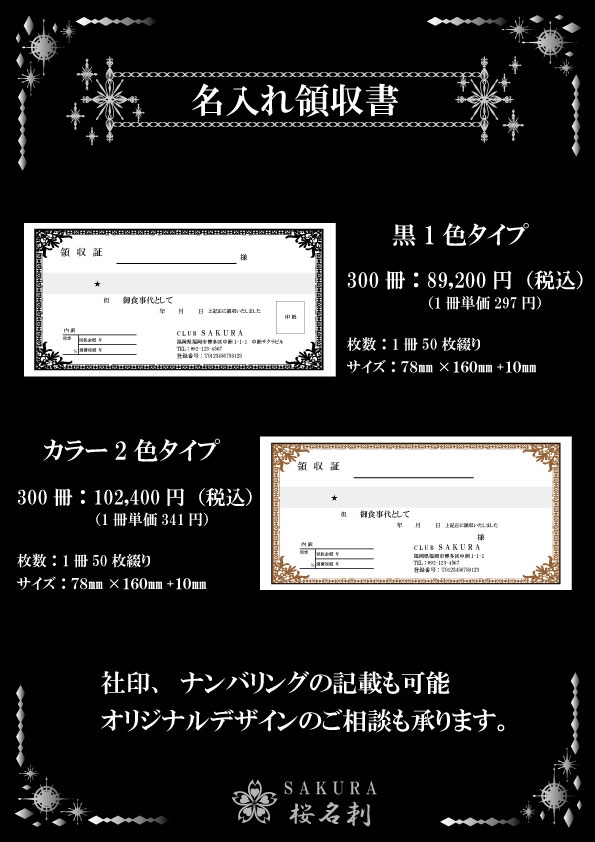 2種類のタイプでどちらかお選びいただき作成いたします。社印、ナンバリングの記載も可能です。オリジナルデザインのご相談も承ります。
